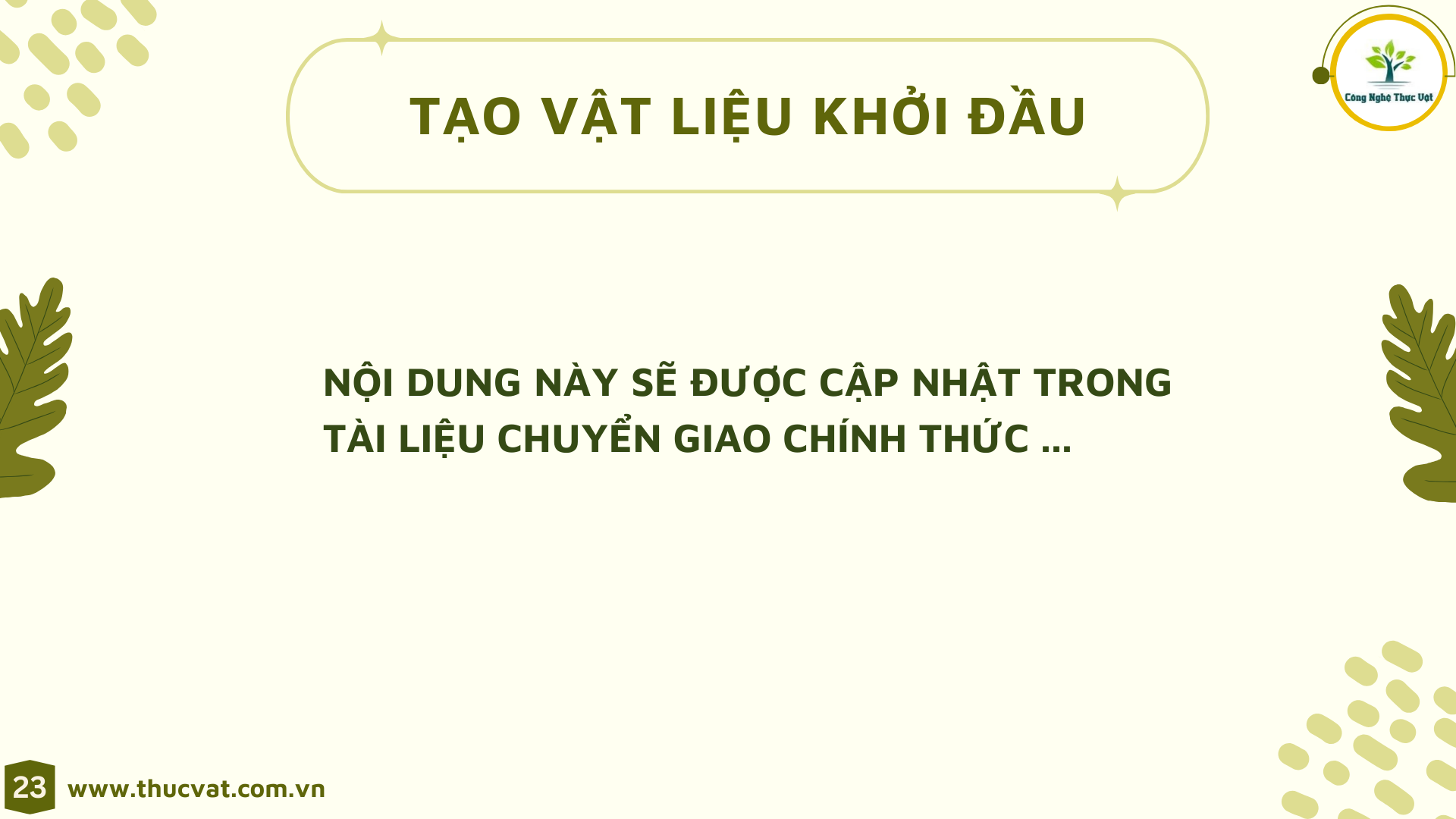 Nội dung lý thuyết, chúng tôi chỉ thiết kế chiếm 20% thời lượng . Phần đào tạo kỹ năng và thực hành sẽ là chủ đạo của quá trình chuyển giao công nghệ.