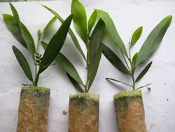 - Cây mầm sau khi được rửa sạch, cắt bớt rễvà cấy vào bầu đất. Cây cấy thường vào lúc chiều tối để tránh ánh nắng chiếu trực tiếp vào luống cây mới cấy.