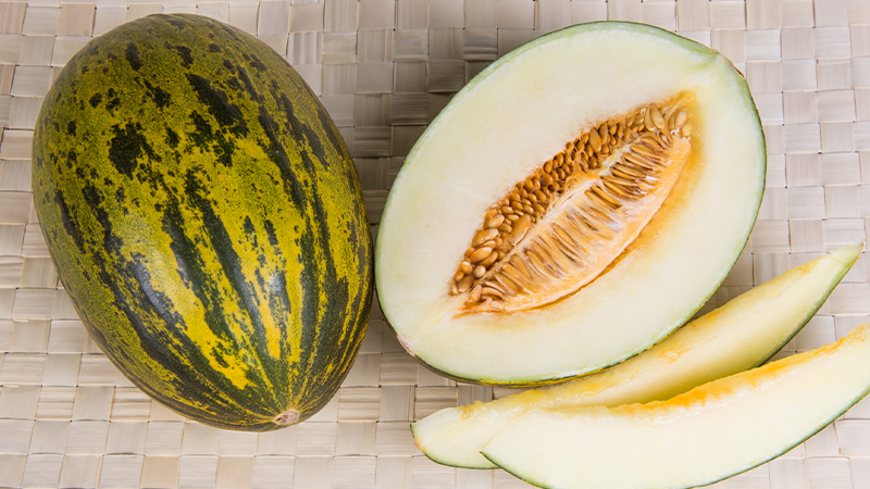 - Dưa lưới New Century Melon có xuất xứ từ Đài Loan, dáng thuôn dài hình bầu dục, vỏ mỏng và có gân mịn hơn so với những loại dưa lưới khác, vỏ và thịt của dưa lưới New Century Melon đều có màu vàng cam, vị ngọt đậm và mùi thơm hấp dẫn.