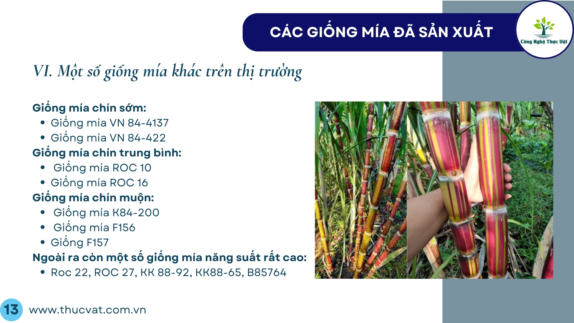 I. Giống mía: