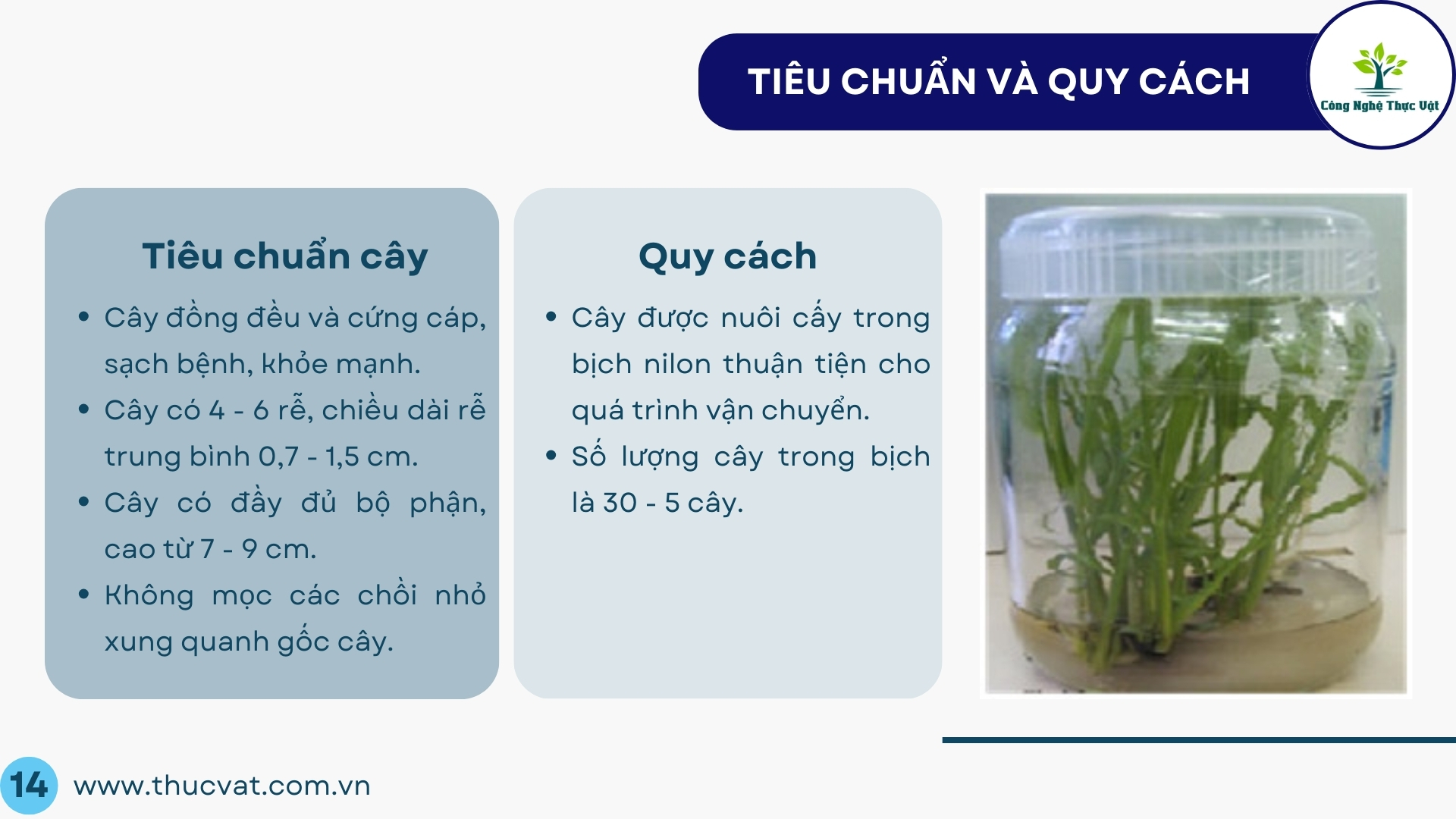 Tiêu chuẩn cây con nuôi cấy mô: