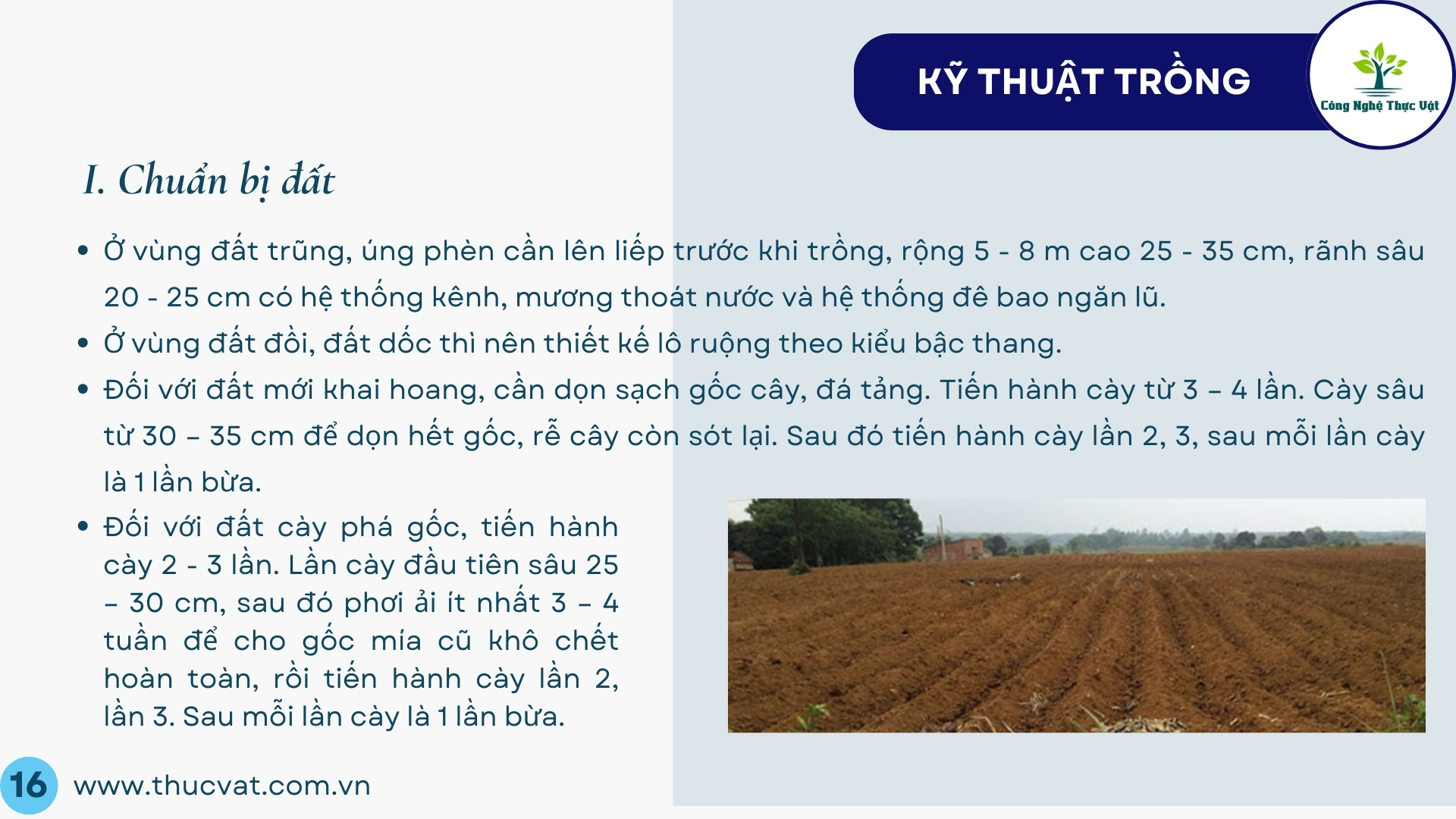 III. Chuẩn bị đất: