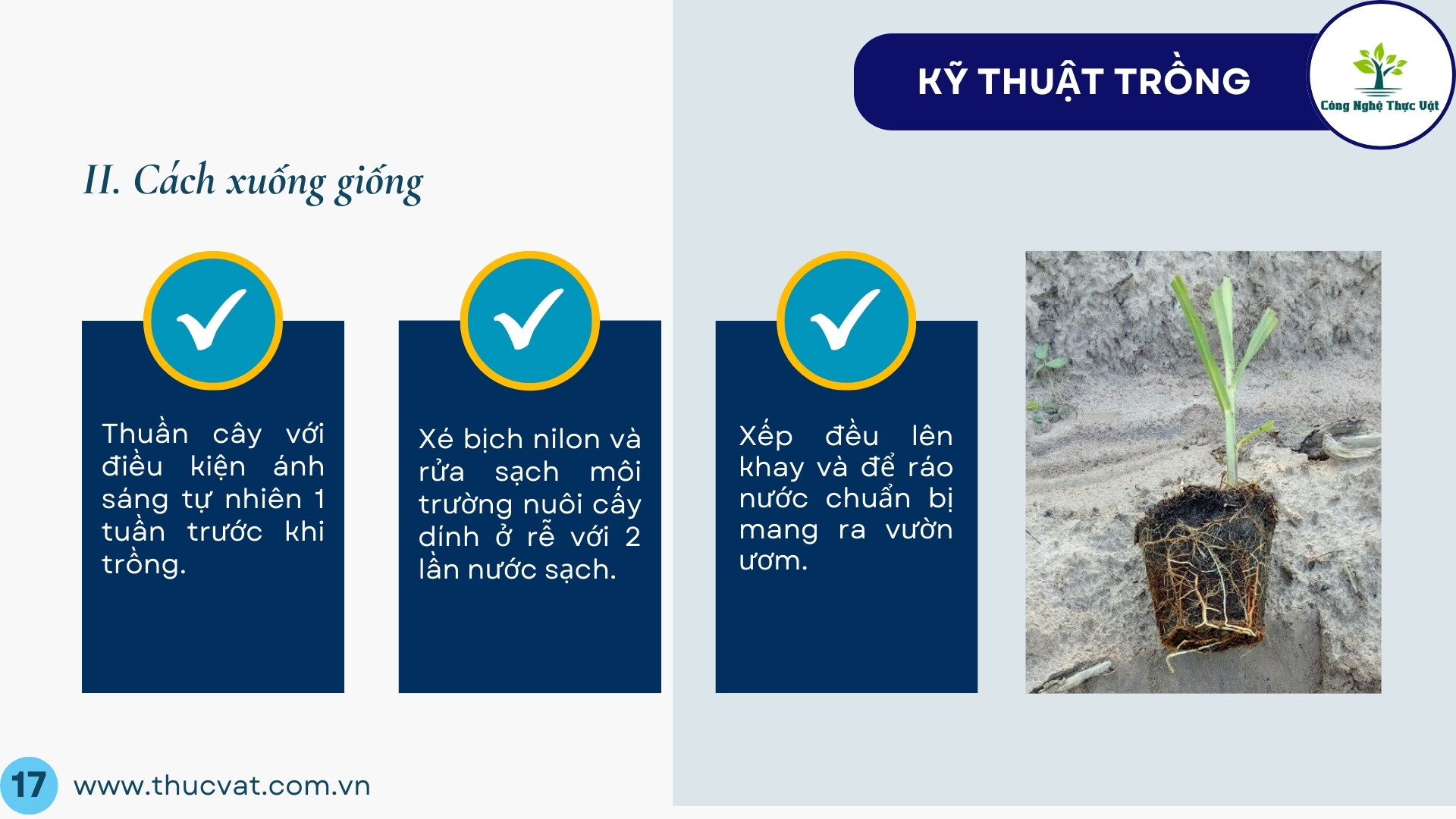 - Trước khi cấy chuyến ra vườn ươm, cần chuyển cây ra nhà lưới có mái che từ 7-10 ngày, không để ánh sáng trực xạ chiếu để huấn luyện cây