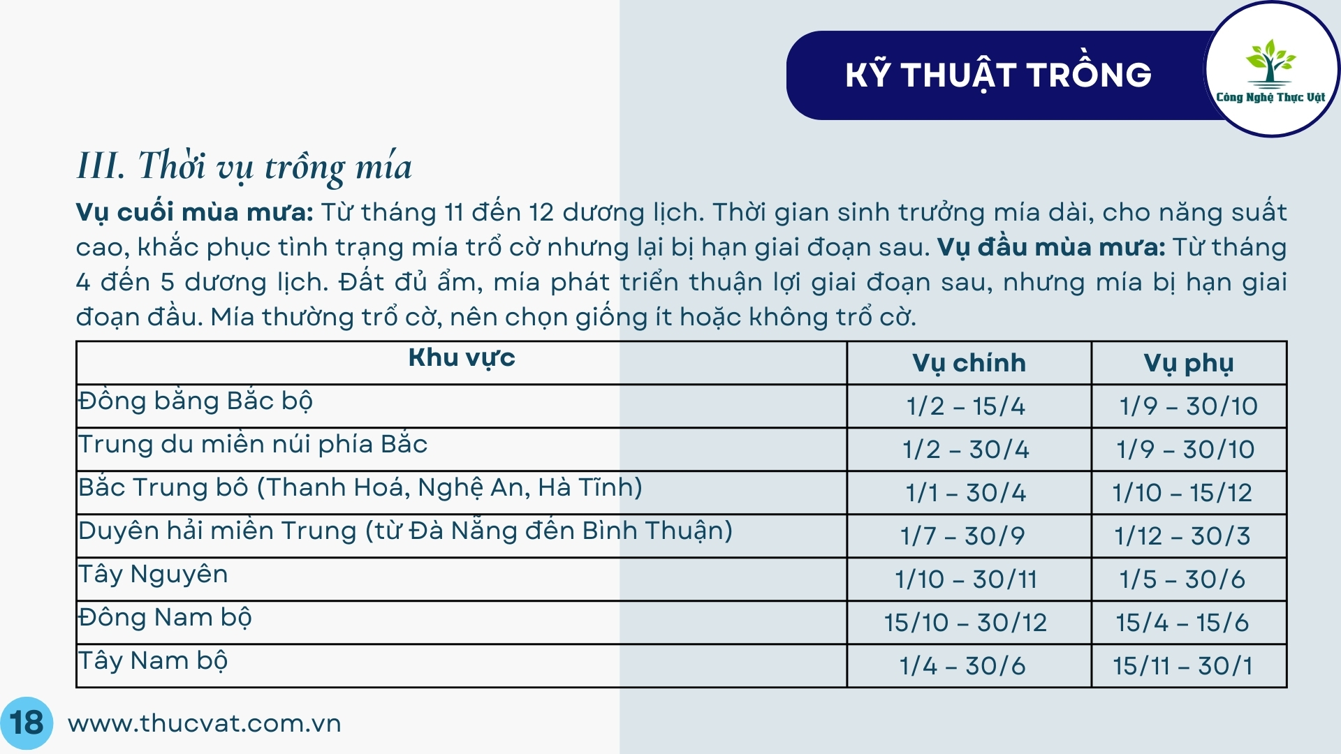 II. Thời vụ: