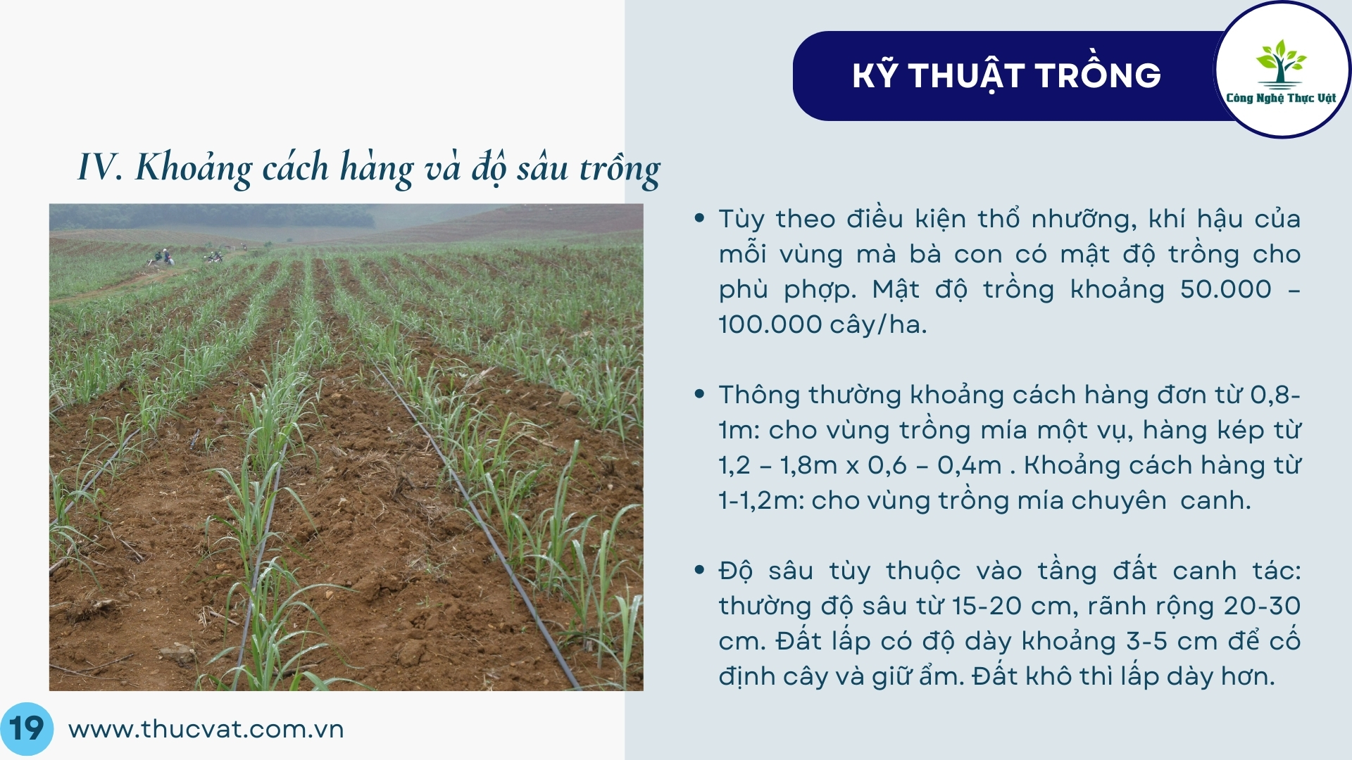IV. Mật độ, khoảng cách và cách trồng: