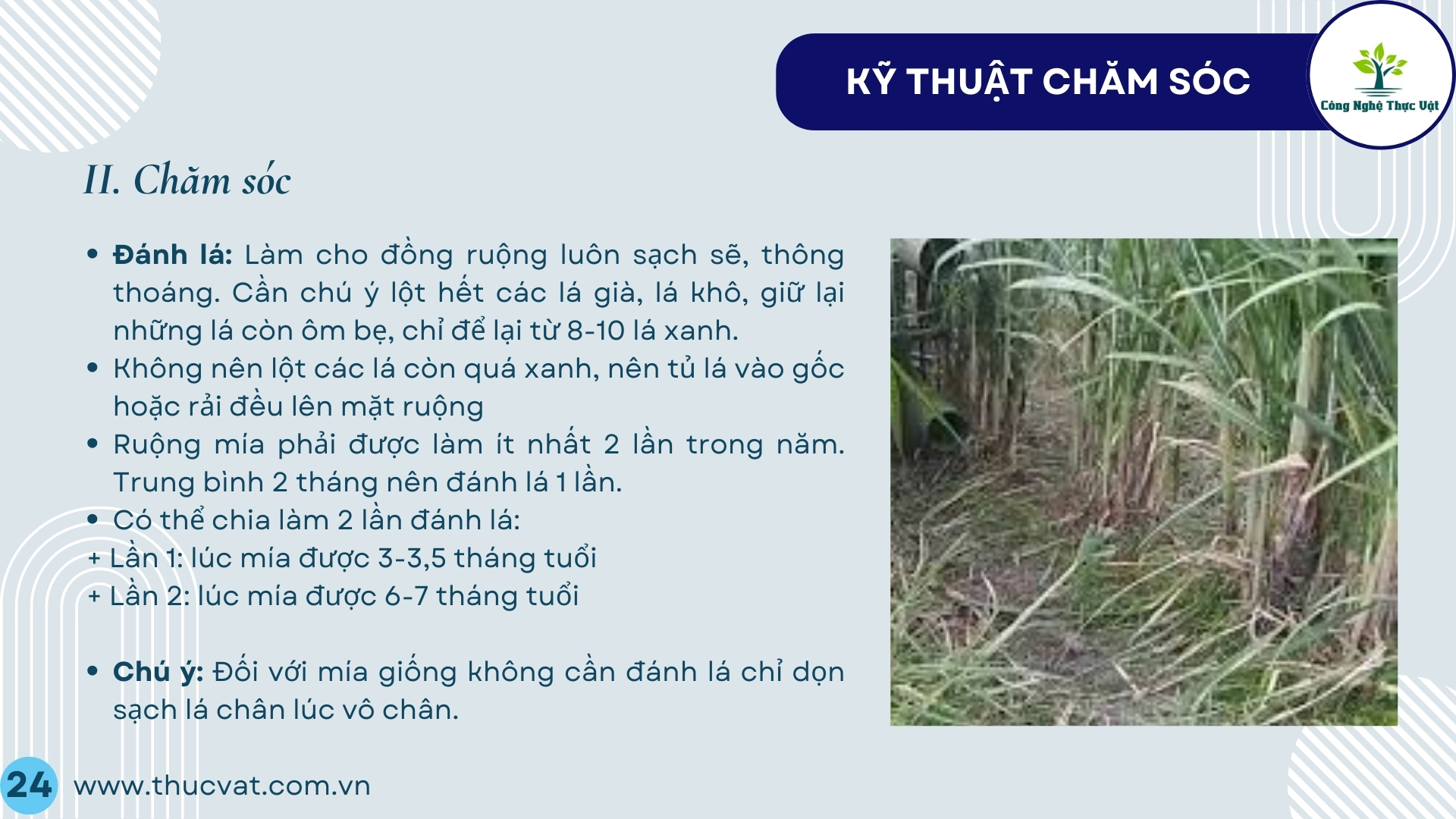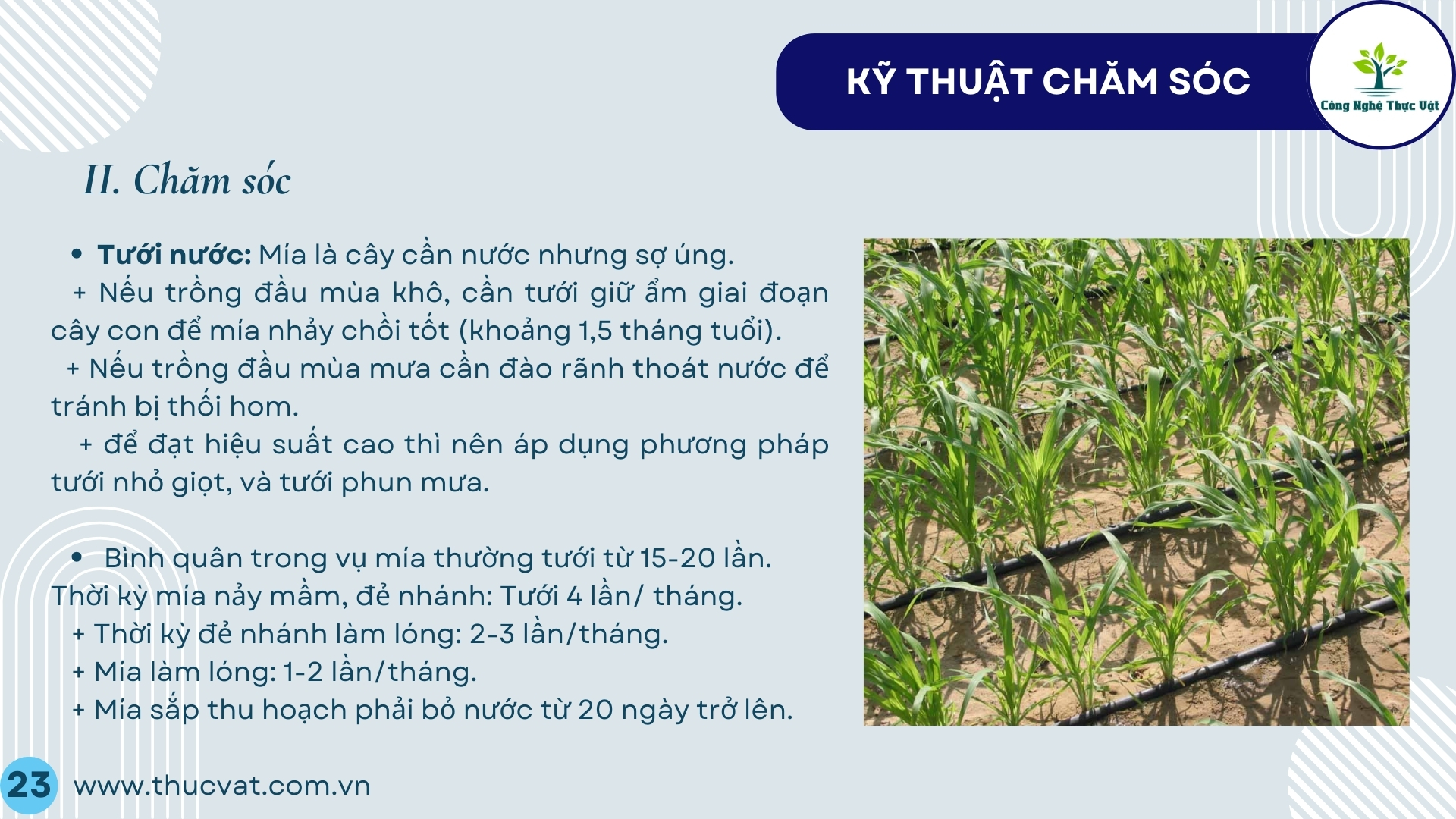- Sau đó bảo đảm độ ẩm thường xuyên như cây mía trồng bằng hom