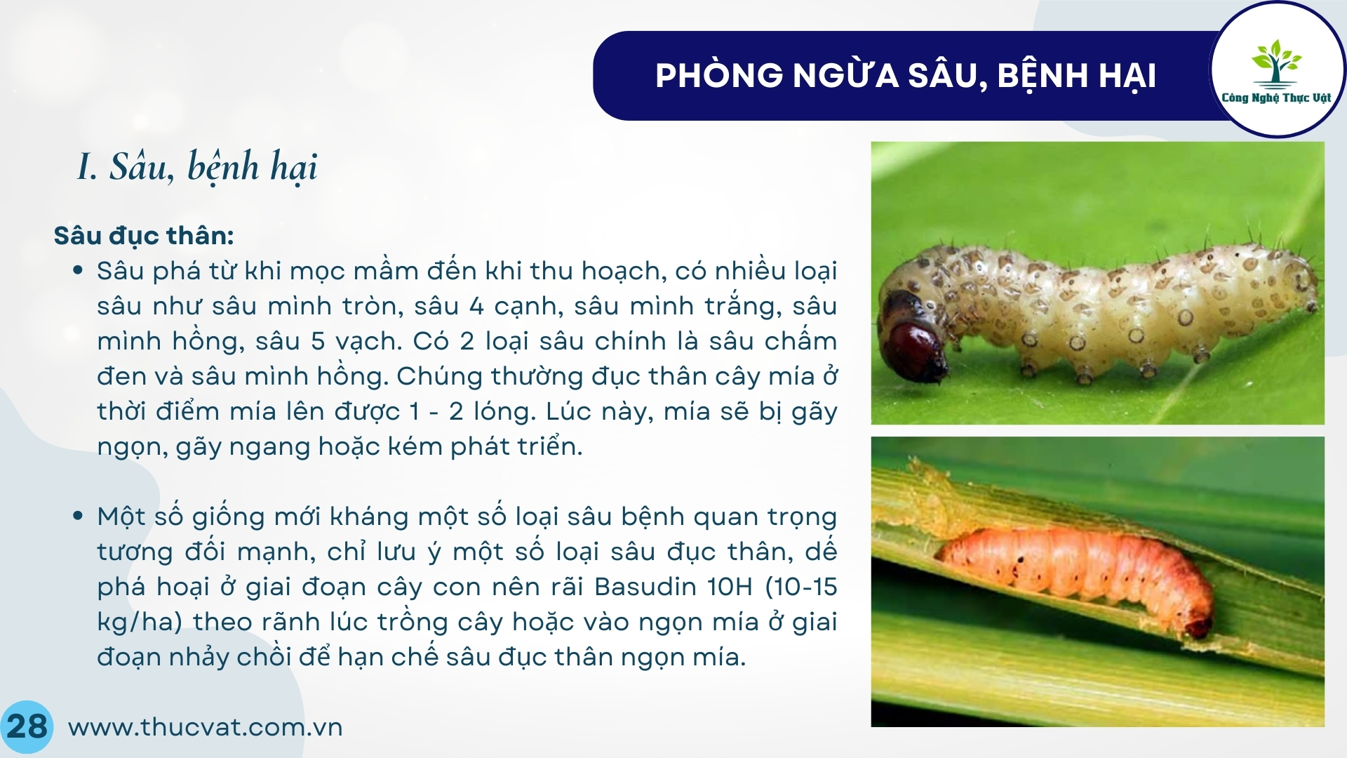 - Sâu đục thân dùng thuốc Padan nồng độ 0,1% tưới vào mầm cây bị sâu hại.