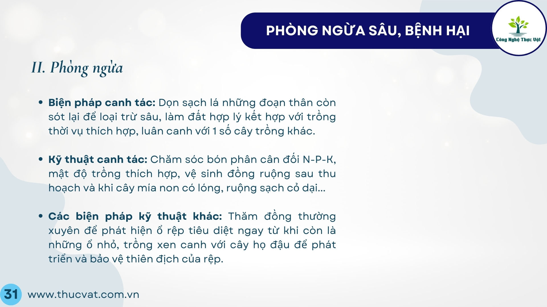 VI. Phòng trừ sâu bệnh: