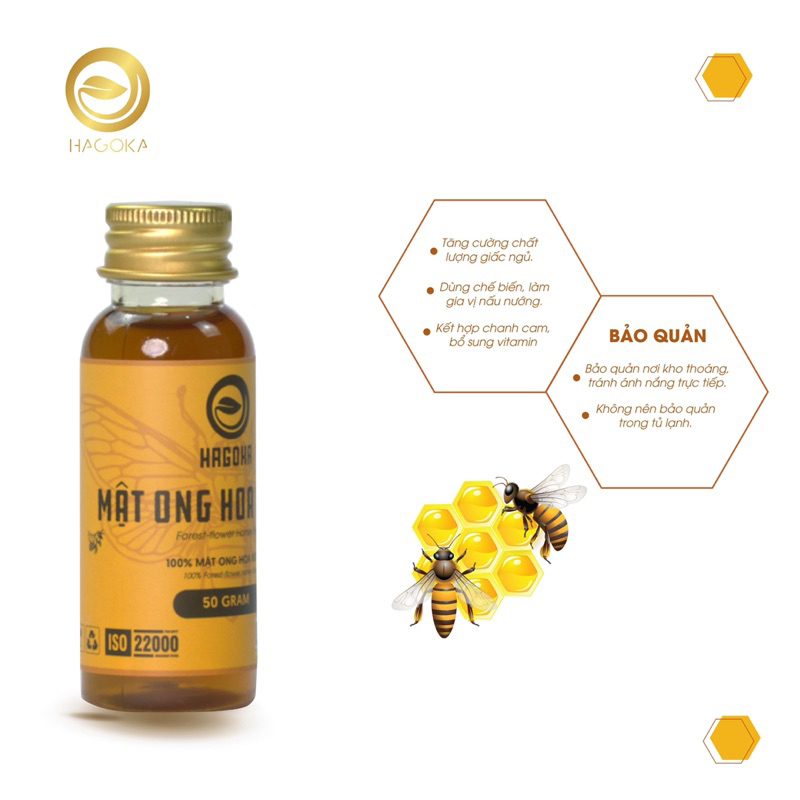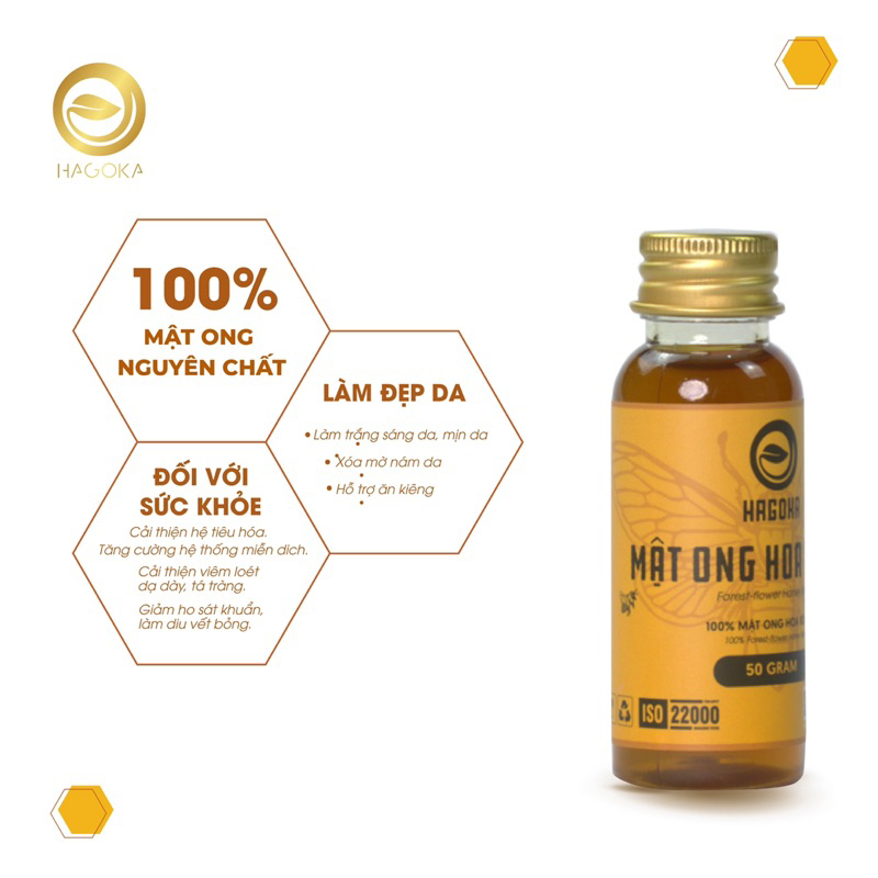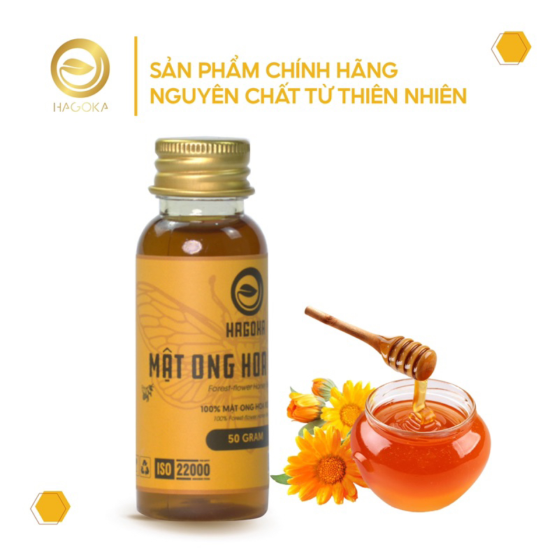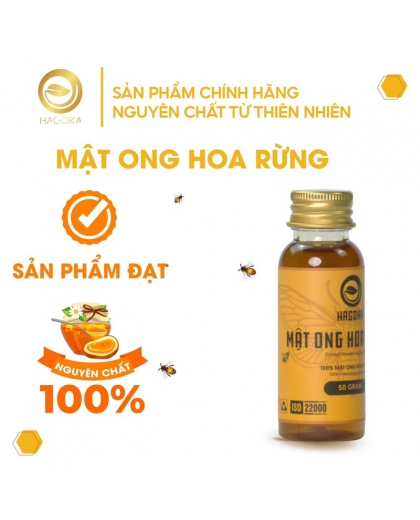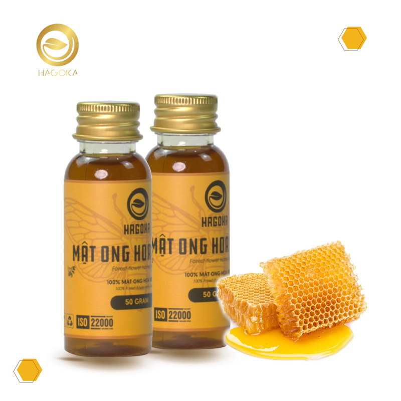- Mật ong rừng nguyên chất Hagoka do ong mật đi lấy phấn hoa về tổ tạo thành. Thành phần của mật ong nguyên chất gồm các loại đường tự nhiên, nước và rất nhiều vitamin và dưỡng chất.