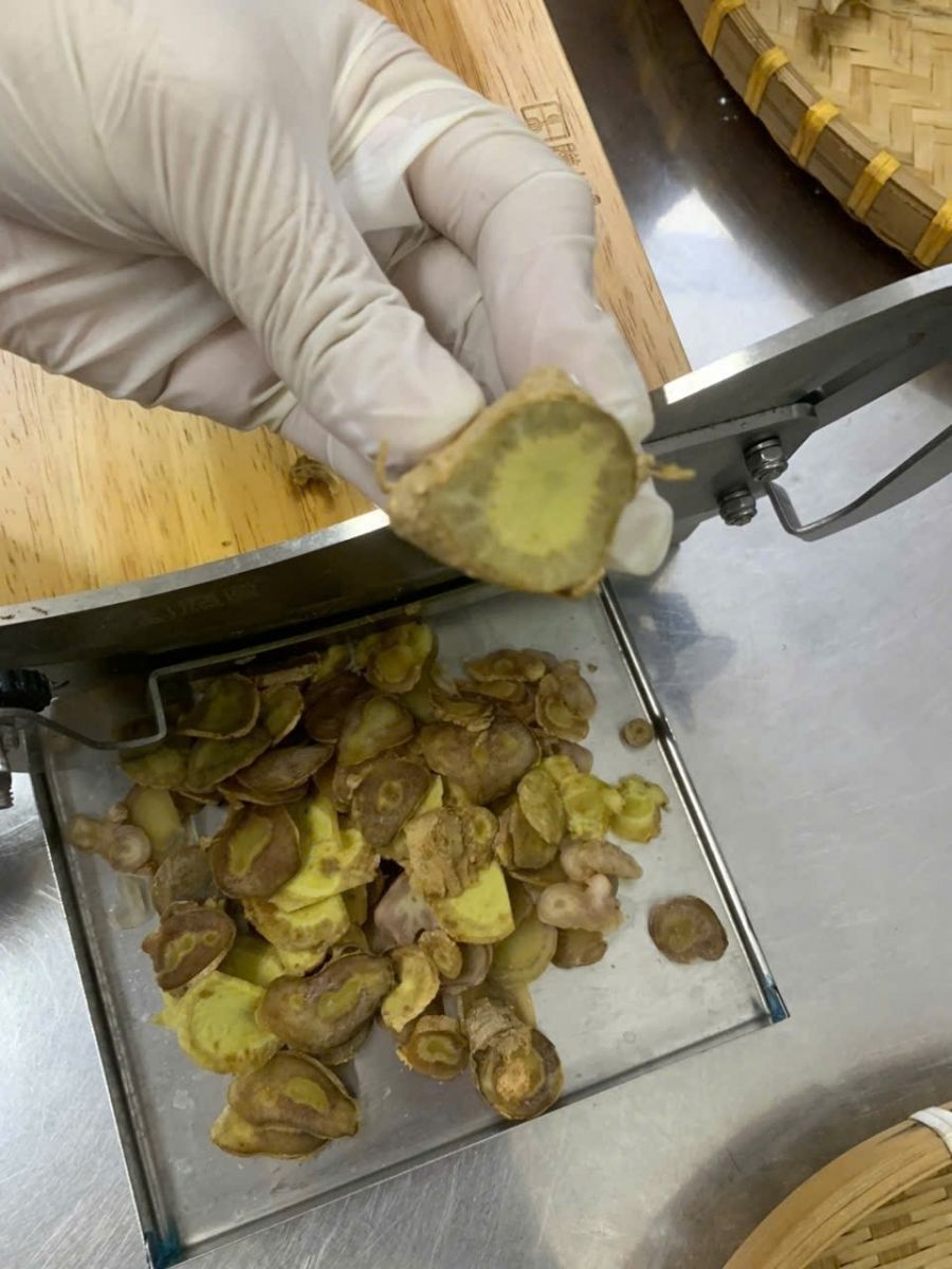 - rửa củ sâm thật sạch, cắt lát mỏng. Sau đó xếp từng lát sâm vào bình bằng thủy tinh, đổ mật ong ngập những lát sâm rồi đậy kín nắp và để trong vòng khoảng 1 tháng là có thể dùng được.