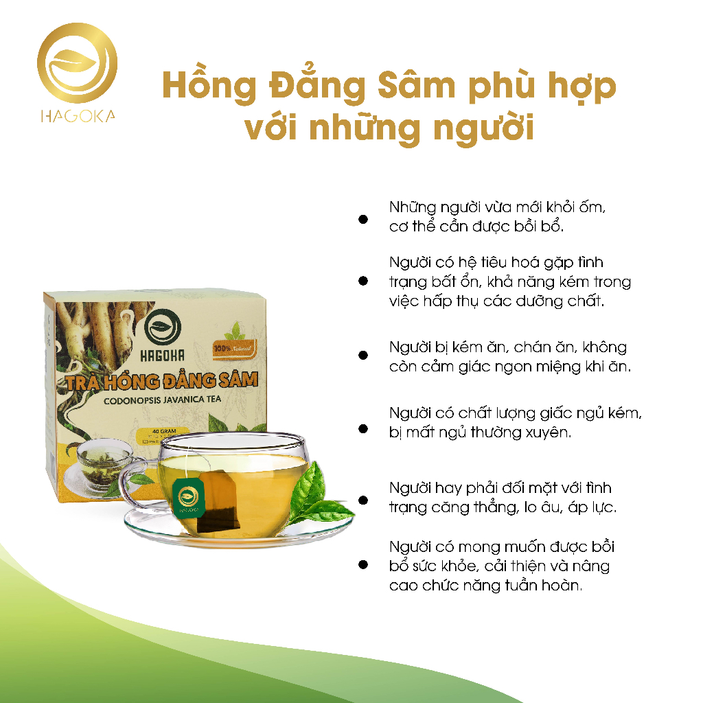 Trà túi lọc hồng đẳng sâm Hagoka hô trợ ăn ngon ngủ tốt 20 túi lọc